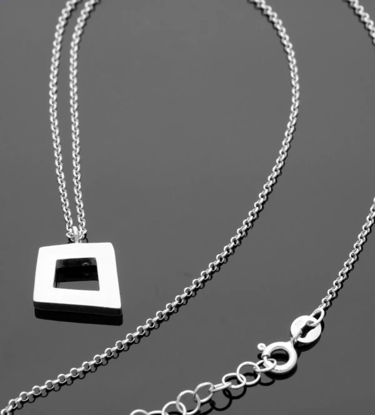 Gargantilla de plata con un diseño impactante que enamora a primera vista. Su cadena fina de eslabones forzados y el rombo calado transmiten armonía y energía positiva, aportando un toque moderno a cualquier look. Ideal para realzar tu estilo con significado y elegancia. Disponible en plata y plata chapada en oro, con entrega inmediata, (comprobar stock disponible) ¡Hazla tuya ahora antes de que el stock vuele!
