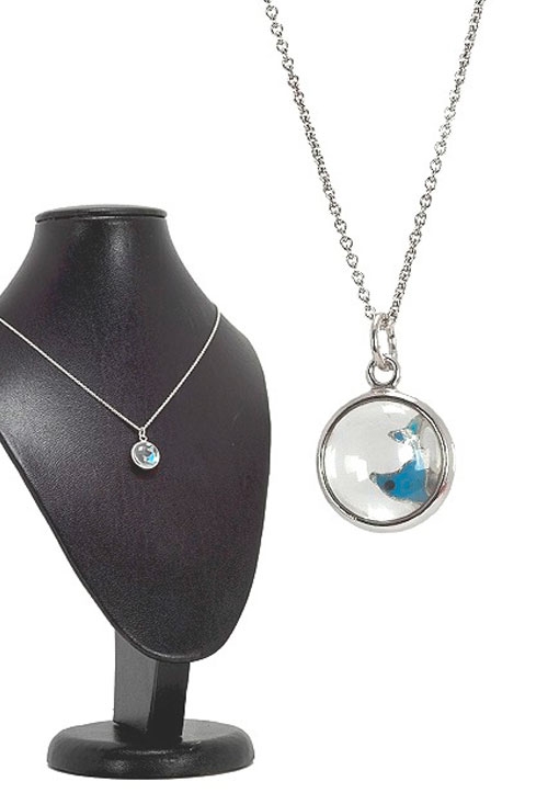 Gargantilla en plata de ley para niñas, colgante de cristal con figura de un delfín lacado en azul en el interior, hace juego con la pulsera modelo HEB-07-FREEDOM y pendientes HEE-07-FREEDOM. Ø colgante: 10 mm. Largo adaptable de 38 a 40 centímetros, peso aproximado 3,00 gramos con cierre de mosquetón. Disponible venta online.