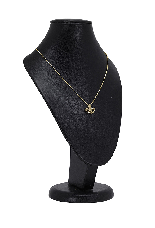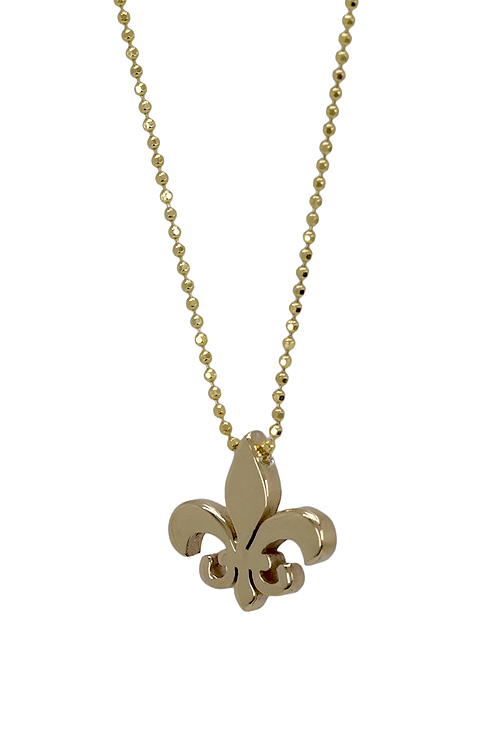 Gargantilla de plata chapada en oro amarillo, formada por una cadena modelo bolas y un motivo representando la flor de lis, un modelo muy actual puesto de moda en revistas y reportajes por las famosas, la cadena mide 40 cm. de largo y el motivo 13*13 mm, acabado en brillo y rodio, también solemos disponer de los pendientes a juego.La flor de lis (flor del lirio) es muy utilizado sobre todo en Francia como símbolo de nobleza en blasones y escudos, esta sobretodo unida aL rey Luis VII (siglo XII) que fue quien lo uso por primera vez en un sello real. Es símbolo de poder y lealtad y también de pureza.