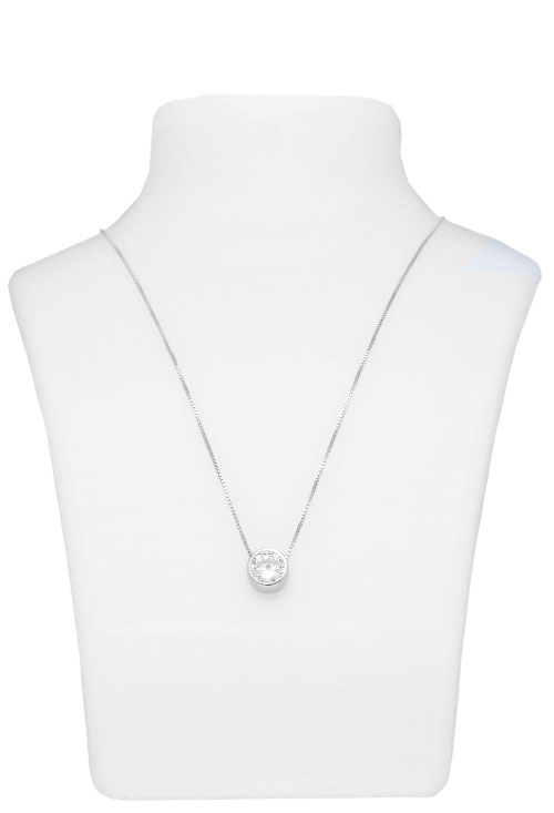 Gargantilla plata chatón 8 mm en cadena veneciana, chatón sin asa que engasta una circonita talla brillante y que que esta atravesado por una tupida cadena modelo veneciano con acabado rodio al igual que el propio chatón, es un modelo intemporal que jamás pasa de moda y que siempre queda bien, perfecto para utilizar de forma habitual y en ocasiones más importantes.