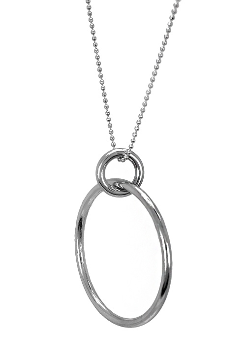 Gargantilla plata de ley cadena fina de eslabones tipo bolas con colgante en plata de ley en forma de aros de chanela redonda colgando uno grande de otro pequeño, regalo precioso para realizar en todo tipo de ocasiones, el circulo grande mide 10 milímetros de diámetro exterior y la cadena da un largo de 40 centímetros con un broche de seguridad tipo reasa, acabado rodio.