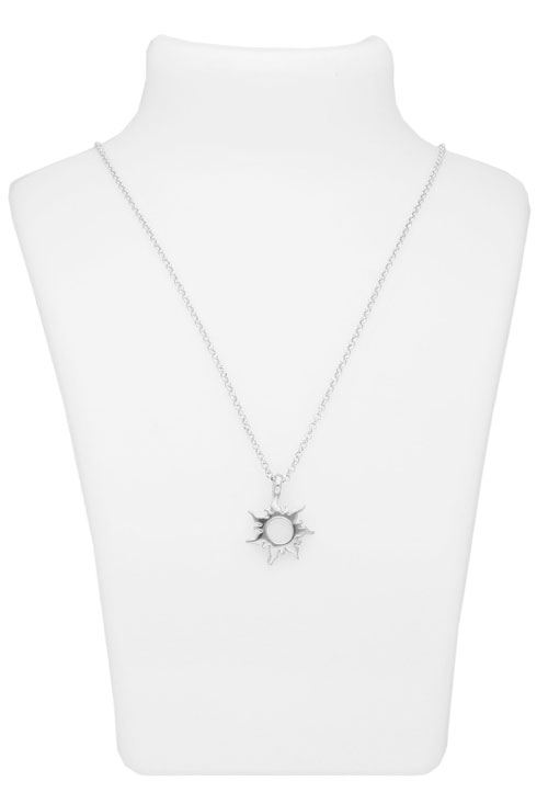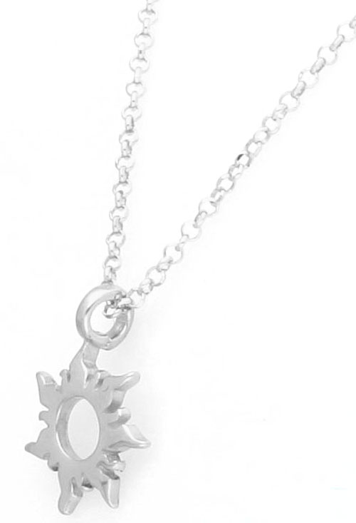 Gargantilla de plata motivo rayos de sol, motivo en forma de sol desprendiendo sus rayos que cuelga de una cadena de eslabones tipo rolo, un regalo ideal para decirle lo que para tí representa, ERES UN SOL y la estrella de mi vida.