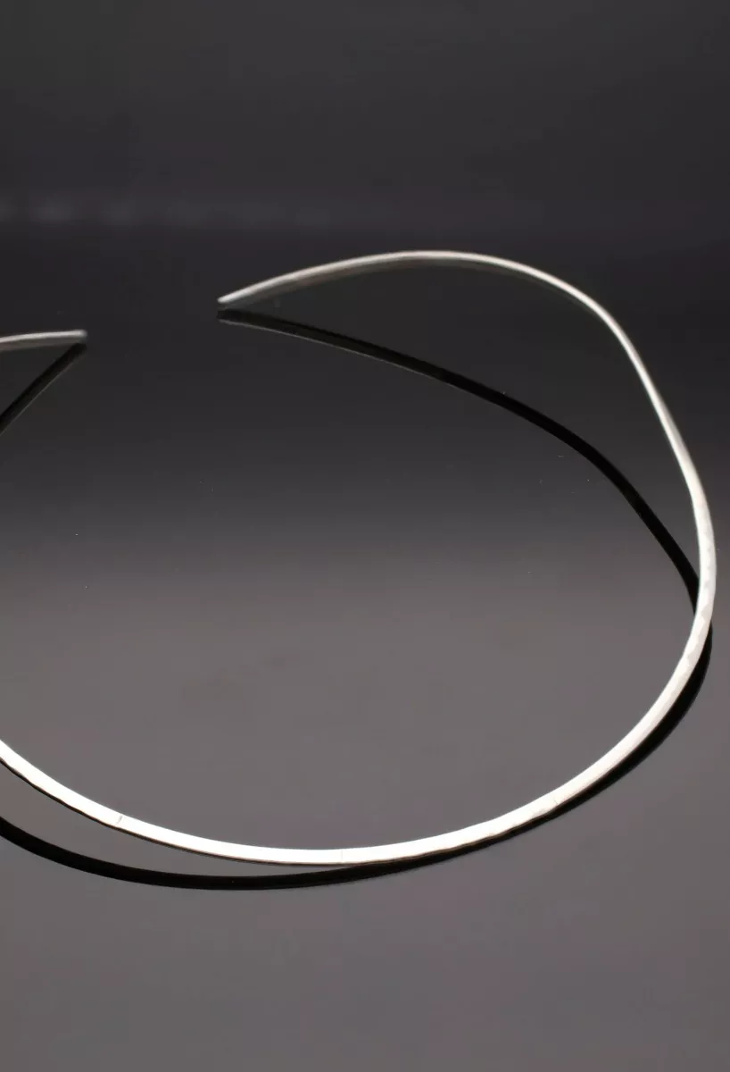 Gargantilla rigida plata de ley, una joya muchas veces buscada y que no siempre eres capaz deencontrar, una gargantilla rigida abierta por su parte posterior formada por media chanela de plata con acabado lapidado, es una gargantilla atrevida para mujeres que quieran destacar de forma fina y elegante.