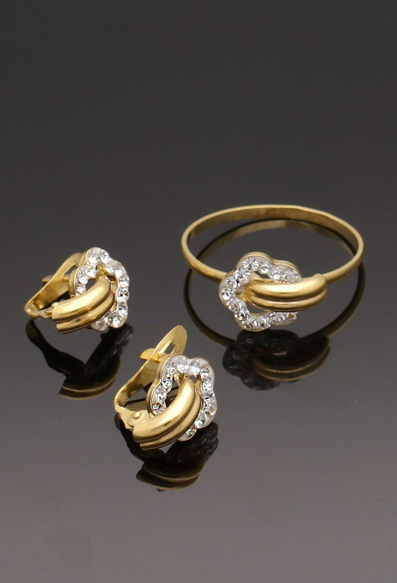 Juego de oro para comunion, conjunto de sortija y pendientes oro ley 18 kilates para niña con cristales checos, es un juego perfecto para primera comunión, el regalo que se convierte en un preciado recuerdo para toda la vida y que puedes comprar al precio más barato en nuestra joyería online.
