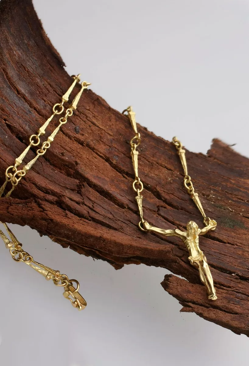 Cristo de Dalí oro 18 ktes cadena de clavos REPLICA