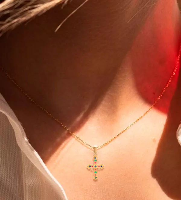 Cruz de Oro Covadonga Amarillo 18 Kilates con Piedras Preciosas: Añade un Toque Especial a tu Estilo