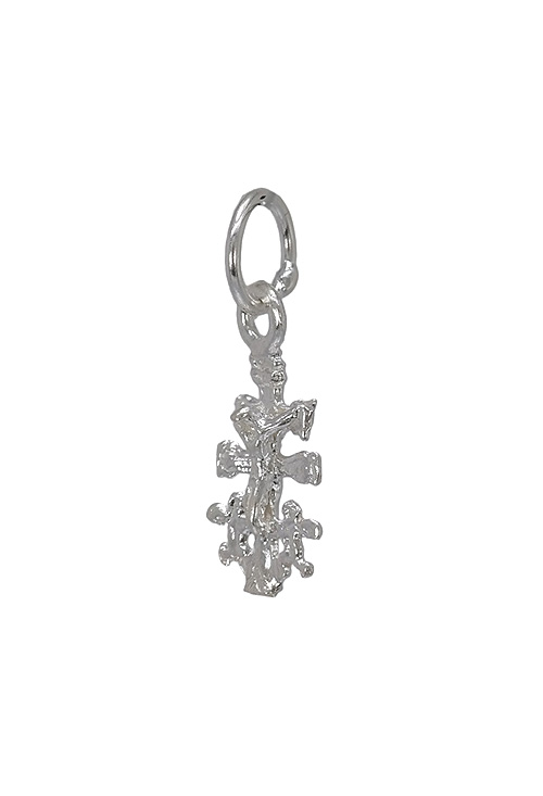 Cruz de Caravaca de plata de ley, tamaño mini con unas medidas de medidas 7×13 milímetros y peso de 0,50 gramos.