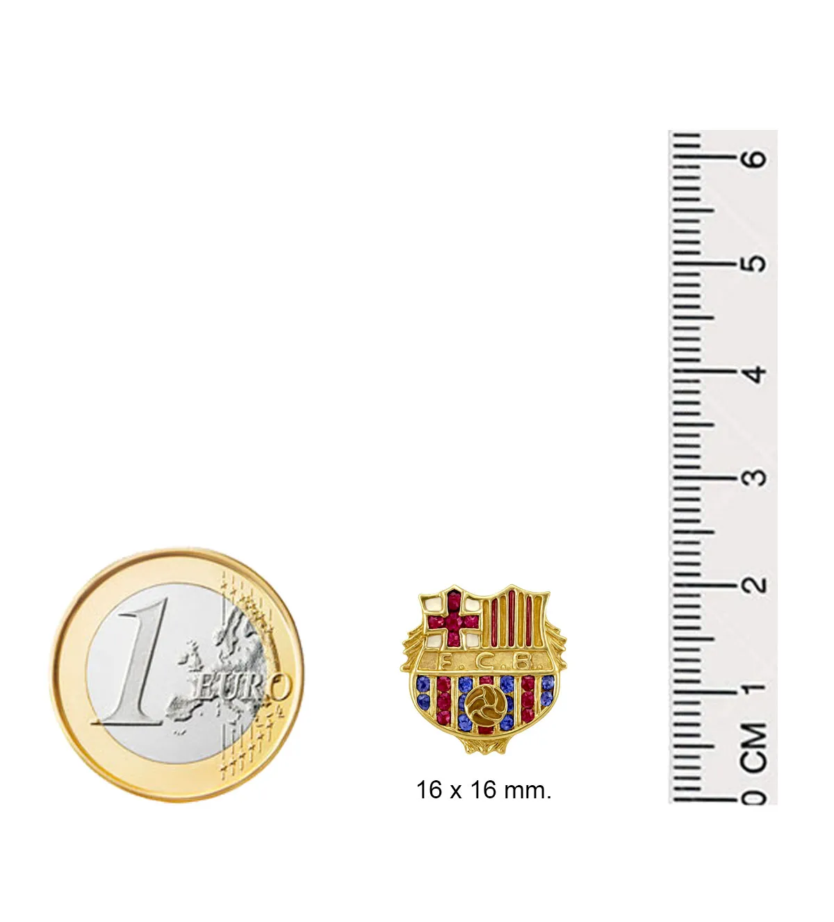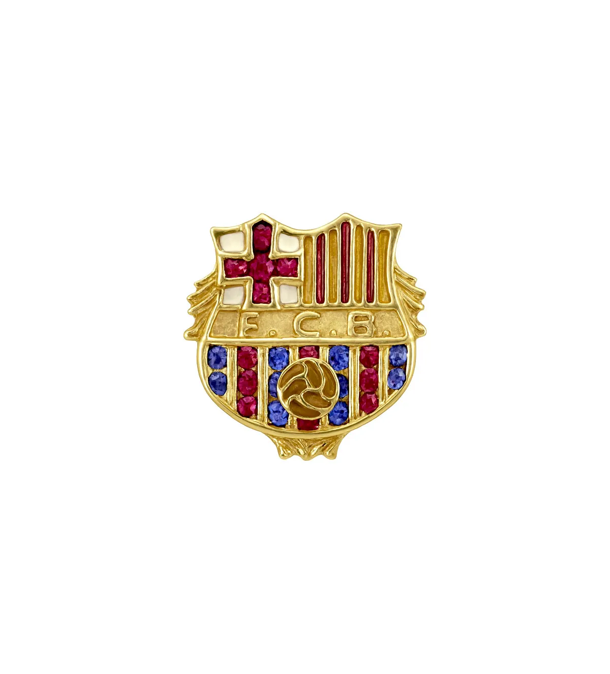 El diseño reproduce fielmente el escudo del FC Barcelona, uno de los emblemas más reconocidos en el mundo del deporte. Su acabado esmaltado, junto con la inclusión de rubíes y zafiros, aporta profundidad cromática y realismo al modelo. Con unas medidas de 16 x 16 mm y un peso equilibrado de 4 gramos, esta insignia destaca pero sin resultar pesada. Ideal para lucir en la solapa de la americana o chaqueta con elegancia discreta.