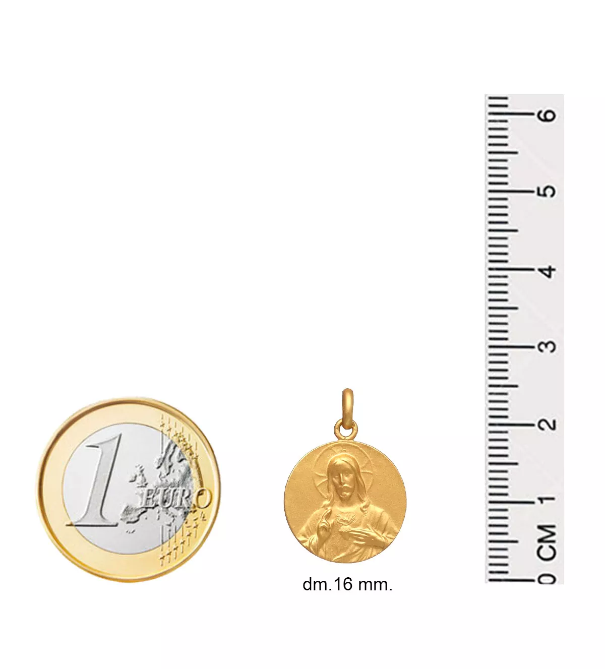 Con su tamaño de 16 mm de diámetro, esta medalla es perfecta para la Primera Comunión, pero su significado trasciende cualquier evento específico. Es una joya que puede acompañar a quien la lleve durante toda su vida, recordándole constantemente la presencia amorosa de Dios y la Virgen María.