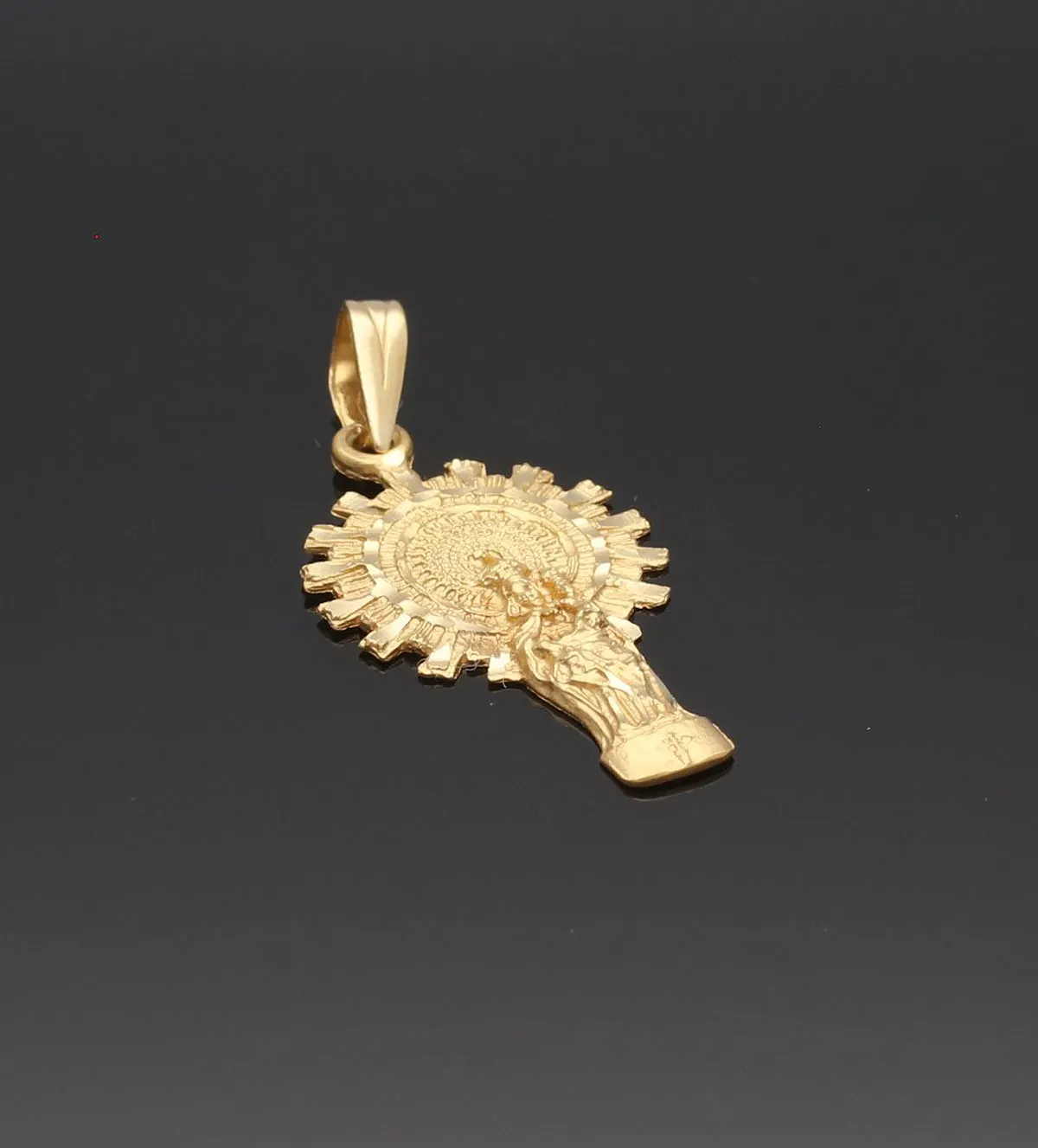 Descubre la elegancia y devoción con esta espectacular medalla de oro de 18K que representa a la Virgen del Pilar. Su diseño silueteado, acabado con cortes lapidados, logra reflejos de luz impactantes, realzando su belleza y valor. Con detalles meticulosos y una aureola decorada con circonitas, esta pieza es una combinación perfecta de fe, sofisticación y exclusividad. ¡Una joya inolvidable para atesorar o regalar!