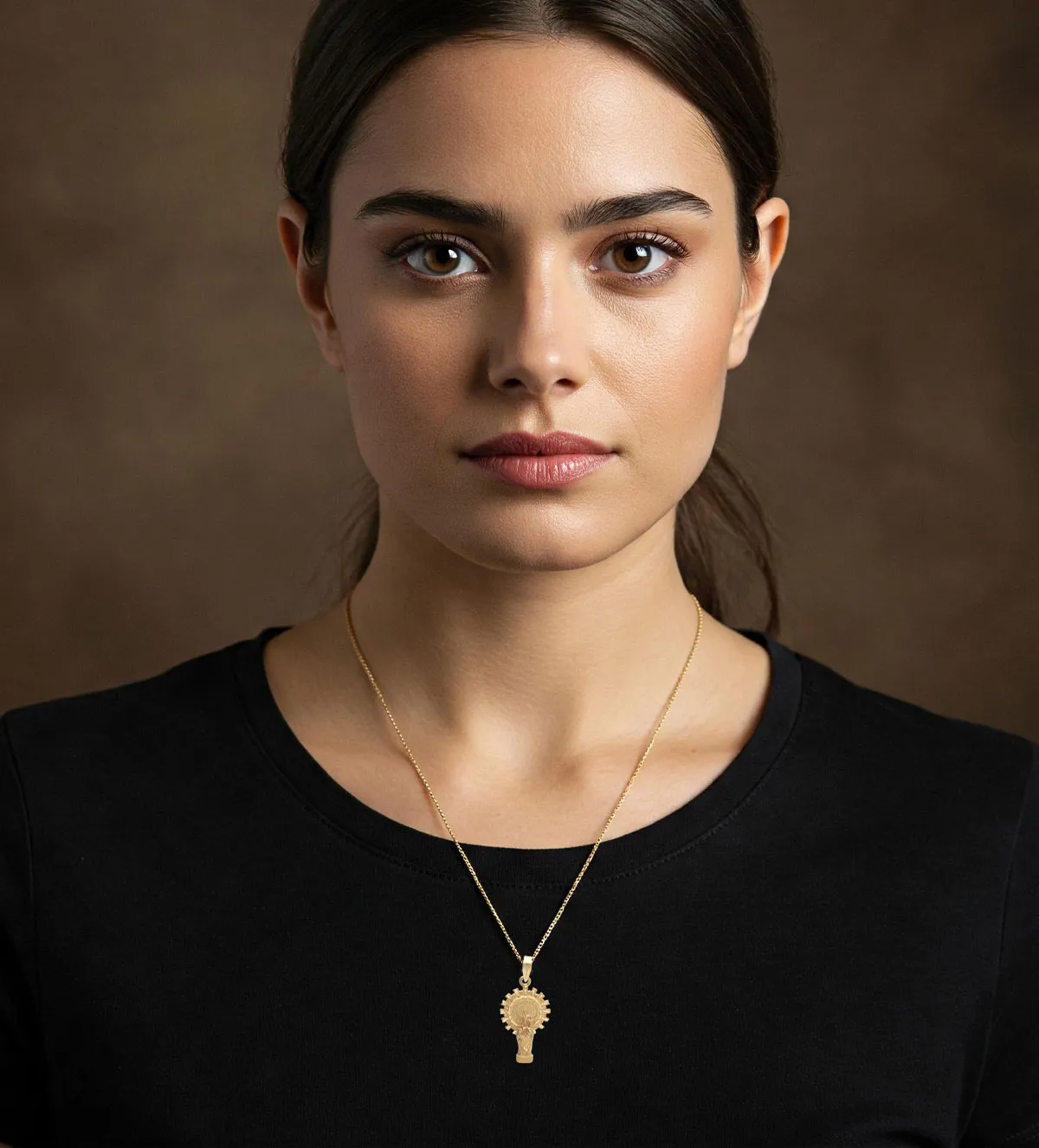 Fabricada en oro de 18 quilates, esta medalla destaca por su resistencia y durabilidad. El oro 18K es reconocido por su pureza y tonalidad cálida, lo que garantiza una pieza atemporal y de gran valor. Su aureola con circonitas cuidadosamente engastadas aporta un brillo excepcional, similar al de los diamantes, añadiendo un toque de lujo a esta joya.