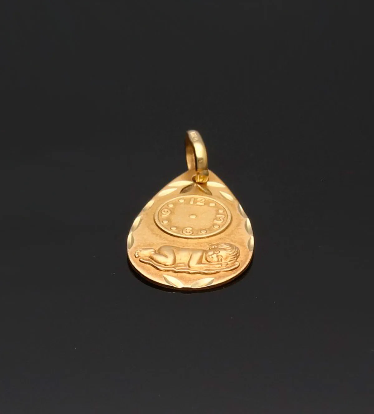 El nacimiento de un niño es uno de los momentos más importantes en la vida de una familia. Regalar una medalla de oro conmemorativa como esta es una forma de inmortalizar ese instante. El diseño representa al Niño Jesús acompañado de un pequeño reloj, pensado especialmente para grabar la hora exacta de nacimiento, lo que convierte esta joya en un objeto completamente personalizado y con una carga emocional enorme.
