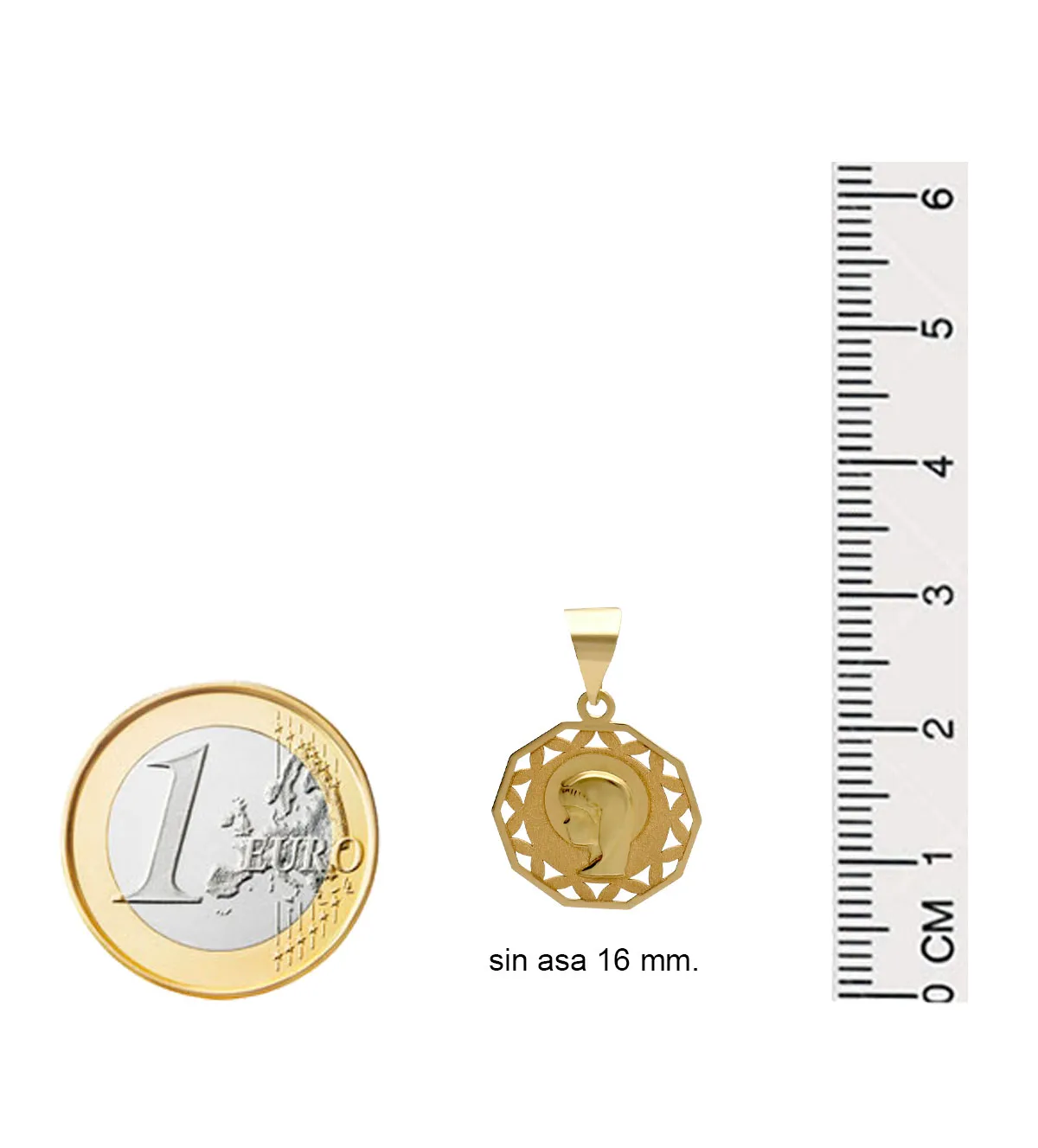 Con un diámetro de 16 mm sin incluir el asa, esta medalla tiene el tamaño perfecto para destacar sin resultar demasiado grande, siendo ideal tanto para niños como para adultos. Su peso de 0,90 gramos la hace ligera y cómoda para llevar a diario, sola o acompañada de una cadena discreta.