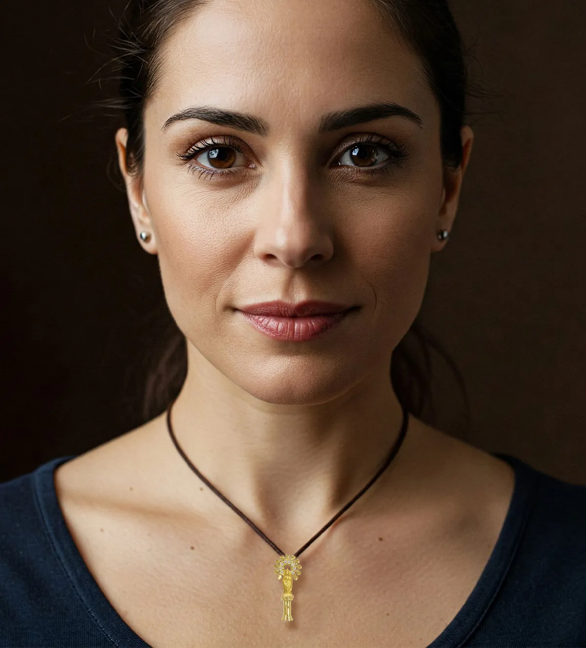 La Virgen del Pilar es un símbolo de protección y fortaleza espiritual. Esta medalla representa fe y devoción, convirtiéndose en una pieza especial para creyentes y devotos. Además, las circonitas simbolizan pureza y claridad espiritual, añadiendo un significado profundo a esta joya.