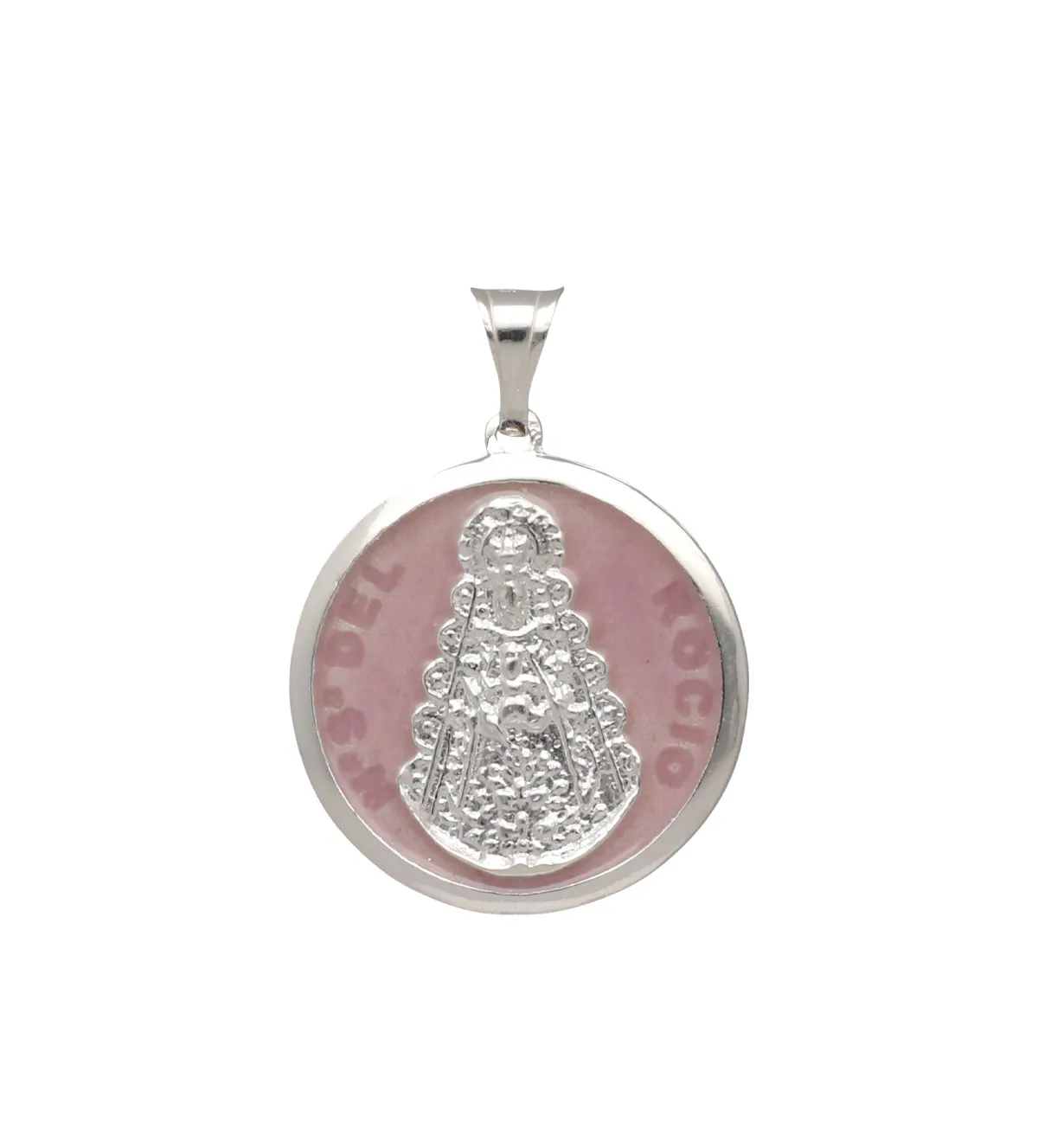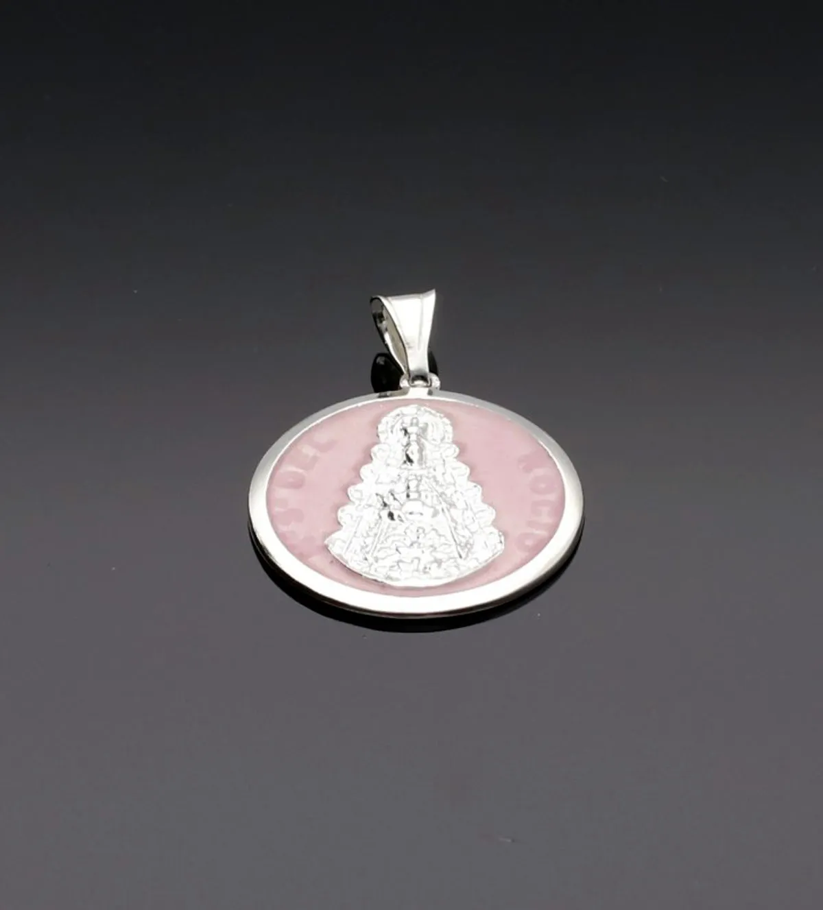 Medalla de plata con esmalte a fuego rosa que representa con delicadeza a la Virgen del Rocío, símbolo de devoción y elegancia. Su refinado diseño la distingue de otras imágenes marianas y la convierte en una joya única para regalar o conservar. Elaborada en plata de ley, esta pieza combina espiritualidad y belleza con un acabado artesanal de alta calidad. ¡Disponible ya en Rubí Joyeros para envío inmediato! No te quedes sin la tuya, las unidades son limitadas.