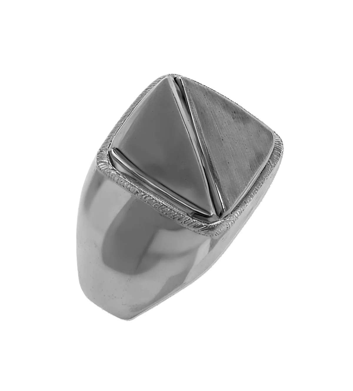 El diseño de este anillo es una obra maestra de la simplicidad y el estilo. Su cabezal cuadrado biselado está dividido en dos mitades, una con un acabado pulido que refleja la luz con elegancia, y otra con un acabado mate, aportando un contraste visual atractivo y distintivo. Esta combinación de texturas en el anillo “Poten” añade una dimensión extra de sofisticación y modernidad, haciendo de esta pieza una elección ideal para el hombre contemporáneo.