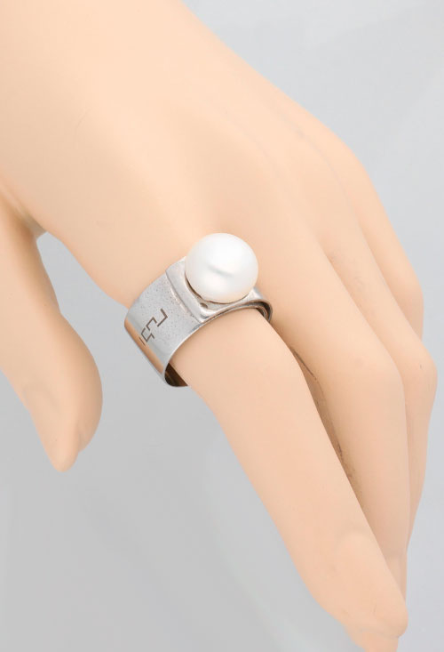 Anillo plata ley y perla cultivada, brazo plano y recto de 12 mm de ancho sobre el que se superpone una preciosa perla cultivada que también mide 12 mm. de diámetro, una joya especial y diferente atrevida en su diseño minimalista que sin embargo deja adivinar una joya especial y diferente.