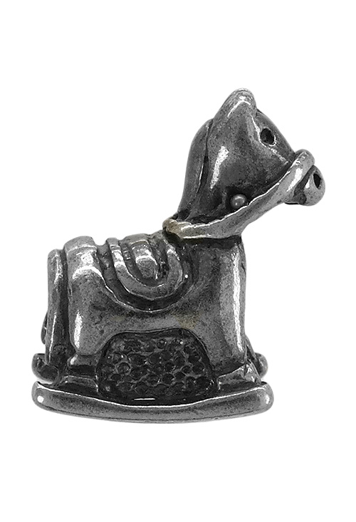 Abalorio para pulsera realizado en plata de ley 925 milesimas representando un caballo de juguete o balancín, un bonito motivo para decorar tu pulsera y seguro recordar un momento especial de tu vida, los abalorios tienen el poder inmenso de traernos recuerdos con solo mirarlos, este abalorio mide 13×15 milímetros y pesa 4,90 gramos.