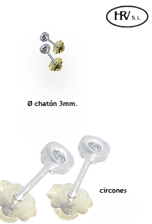 Pendientes oro blanco 18 kilates con circonita para bebés, modelo tipo chatón circular de 3 milímetros de diámetro con sistemas de tornillo con tope, estas tuercas no deben ser atravesadas por el palillo y de esa forma se evita que este pueda molestar a la niña cuando se recuesta, es un modelo que siempre la queda bien y combina con todo tipo de ropa.