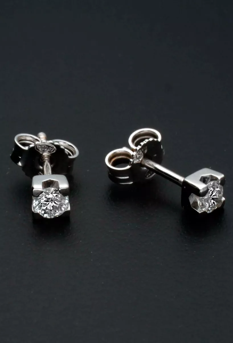 Piedras: 2 diamantes talla brillante que pesan en conjunto 0,30 (0.15 ct. cada uno) quilates son color H y pureza SI