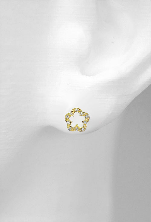 Pendientes oro con diamante forma de flor calada 192_Z1482-OA