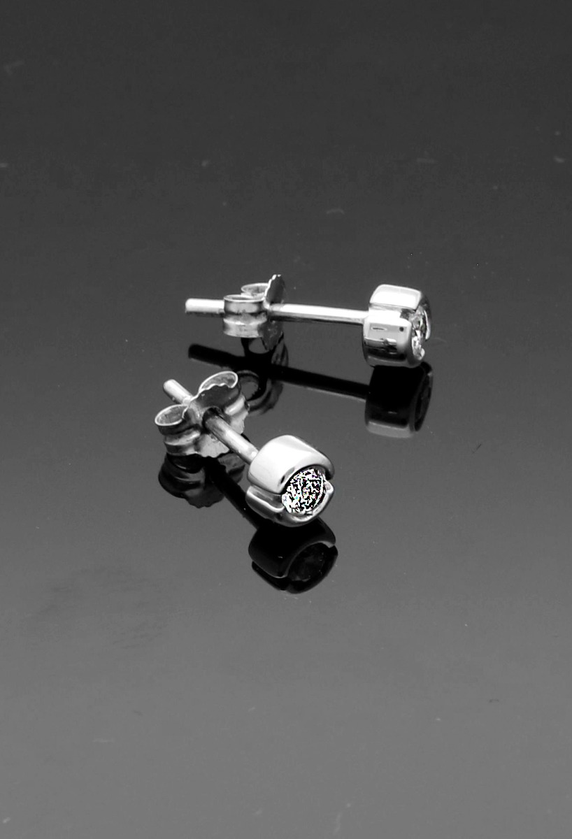 Pendientes oro blanco 18 kilates con diamantes tipo chatón, modelo original que aporta al modelo clásico la novedad de dos cortes enfrentados en el bisel y de esta forma entra más luz a la piedra que refleja incontables brillos y reflejos, dispone de sistemás reforzados de presión, este modelo es perfecto para mujeres de cualquier edad y también muy solicitado por el sexo masculino. Aprovecha los descuentos especiales de nuestra joyería online.