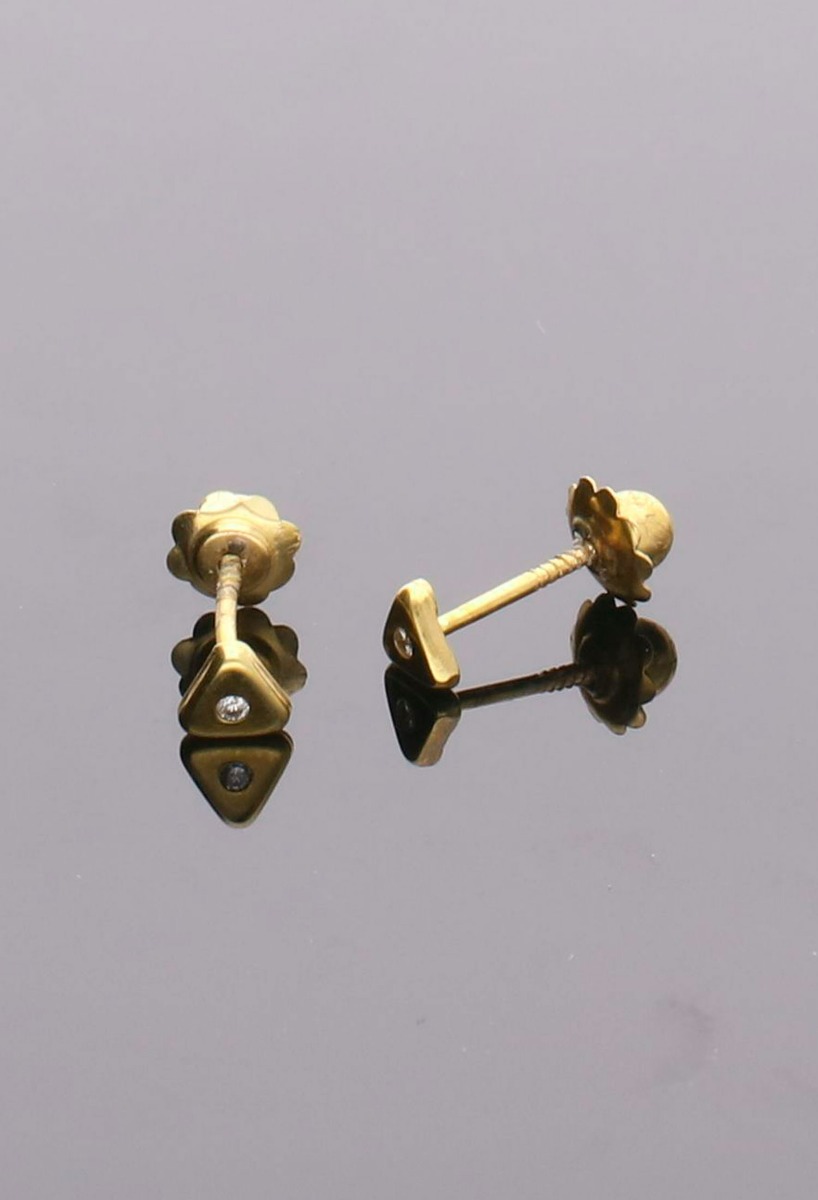 Pendientes de oro con diamantes tipo dormilona, preciosos pendientes de bebe que se pueden utilizar durante toda la vida, un recuerdo inolvidable de la persona que realizo el obsequio, un testigo de amor para toda la vida, son unos chatones triangulares de oro amarillo con un pequeño diamante talla brillante y sistema de tornillo o rosca.