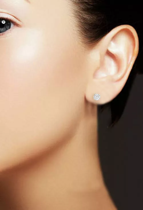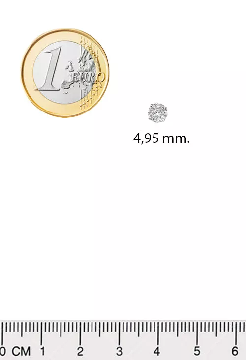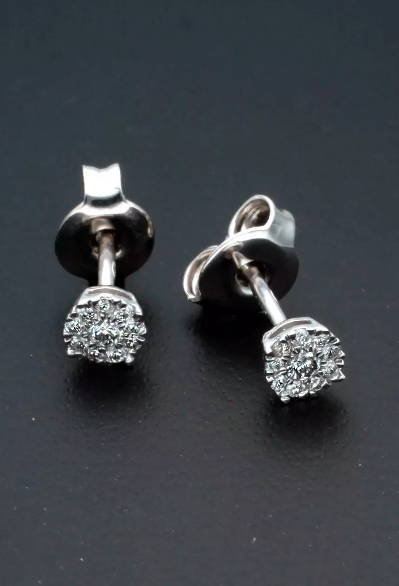 Cada pendiente esta formado por un brillante central de 0,03 quilates rodeado por 9 de menor tamaño de 0,01, en total 0,12 quilates cada pendiente, todos son color H y pureza SI.