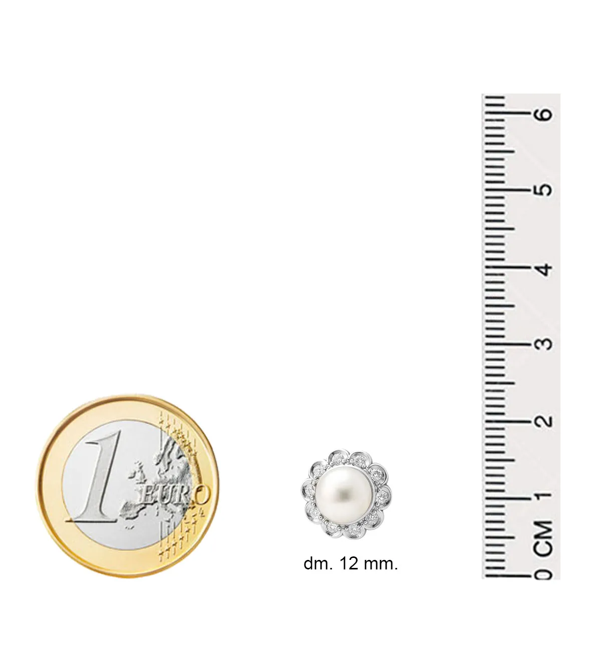 | Características piedras | 2 perlas cultivadas de 7 mm. y 12 diamantes talla brillante, peso 0.47 ct. color H pureza VS |