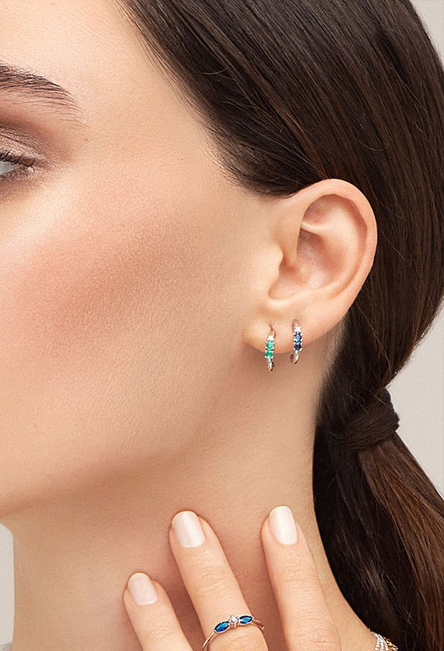 Pendientes plata con esmeraldas y diamantes Serenata, joya marca Mont Petit Diamand colección Serenata,se trata de un pendiente medio aro que engasta en garras individuales dos esmeraldas talla redonda y un diamante también redondo (brillante) se cierran con sistemas reforzados de presión quedando prendidos a la oreja de forma muy elegante y segura.