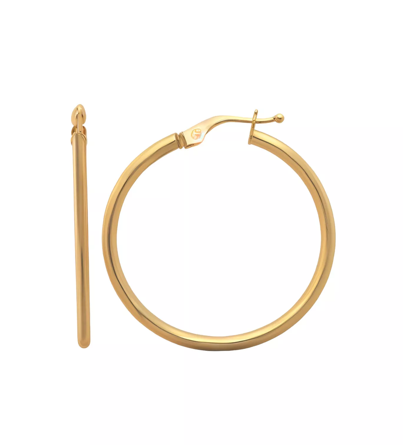 El diseño clásico de las criollas nunca pasa de moda, y este modelo de 29 mm es la prueba perfecta de ello. La forma redondeada y el cierre de ballestilla en U garantizan una sujeción segura sin sacrificar la comodidad. El acabado pulido en la superficie de los pendientes realza su brillo, haciéndolos destacar sin ser exagerados. Su diseño minimalista los convierte en una opción adaptable a cualquier estilo, desde looks casuales hasta atuendos más formales.