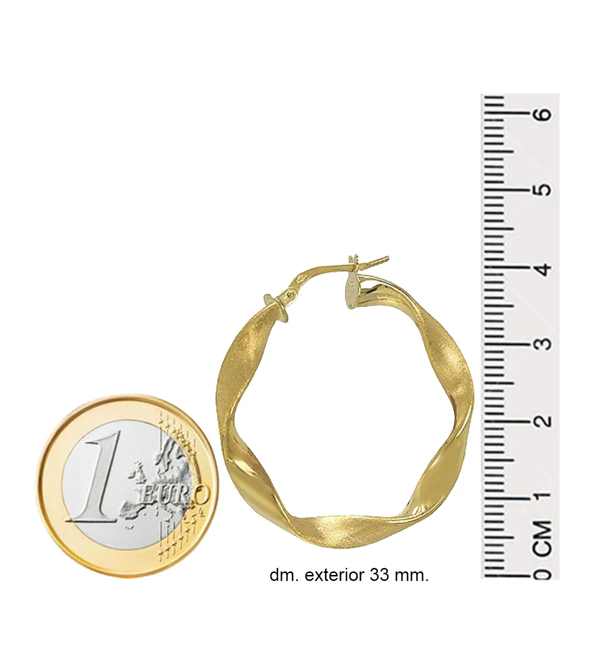 Pendientes de oro que destacan por su elegancia natural. Estas criollas de 33 mm en oro amarillo de 18 kilates, con chanela hueca y rizada, favorecen cualquier rostro y ocasión. Brillan con estilo y se convierten en el regalo perfecto para cumpleaños y celebraciones especiales. ¡Haz tu pedido ya! Disponibilidad inmediata y unidades limitadas en la joyería online más antigua de España.