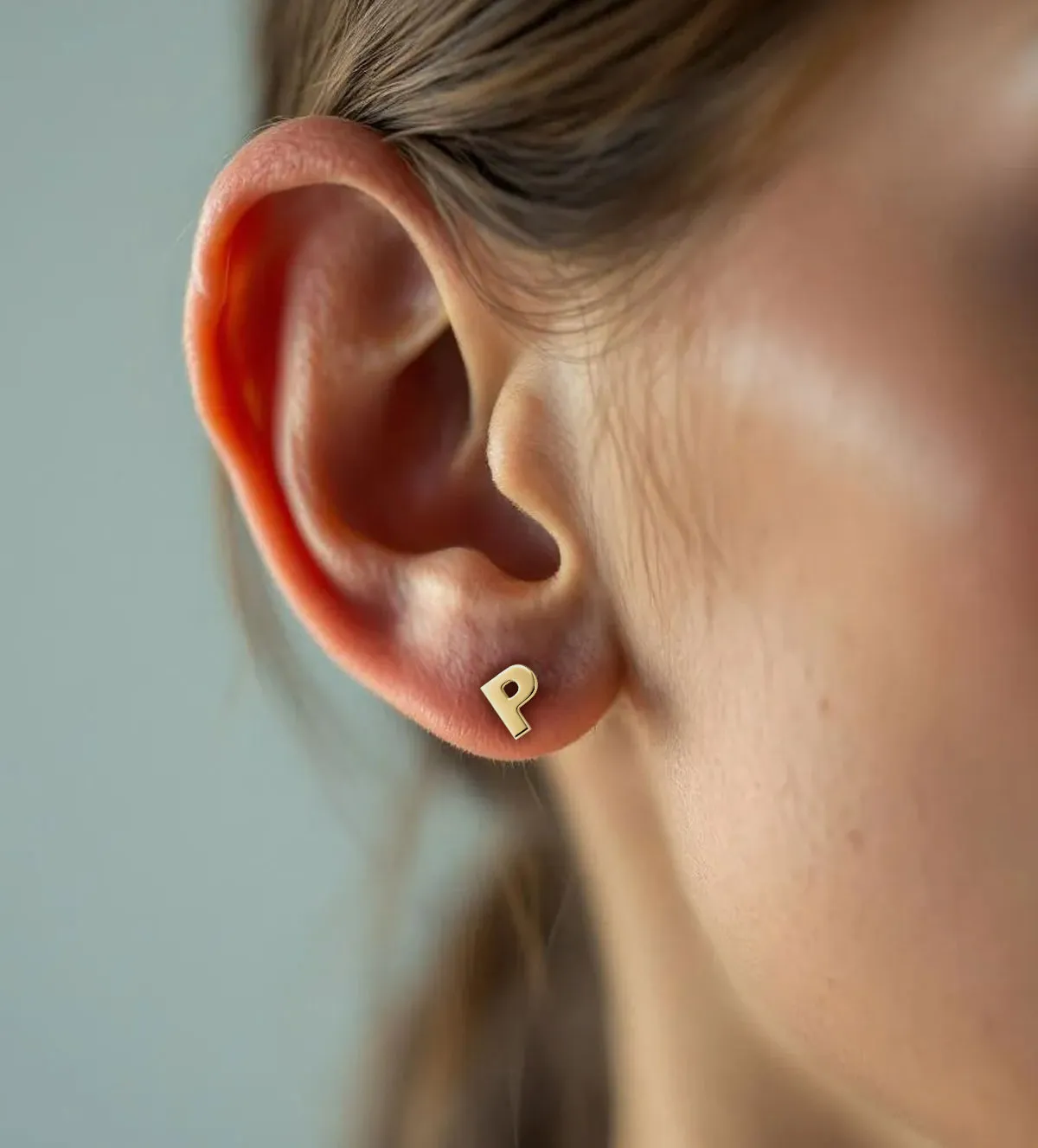 Pendiente de oro 18k letra P (medio par) 036_BB_25T8