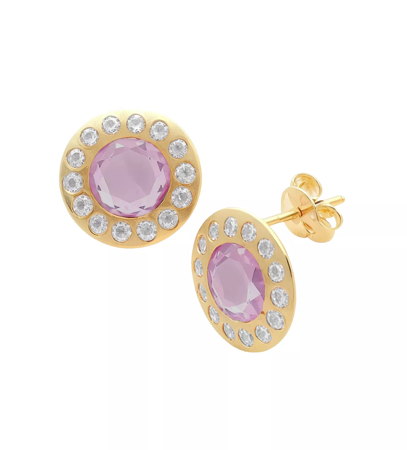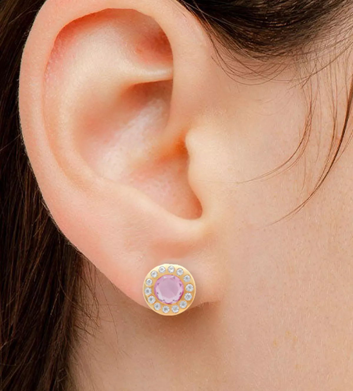 Pendientes de Oro “Sol Malva”: Elegancia Atemporal con un Toque de Color
