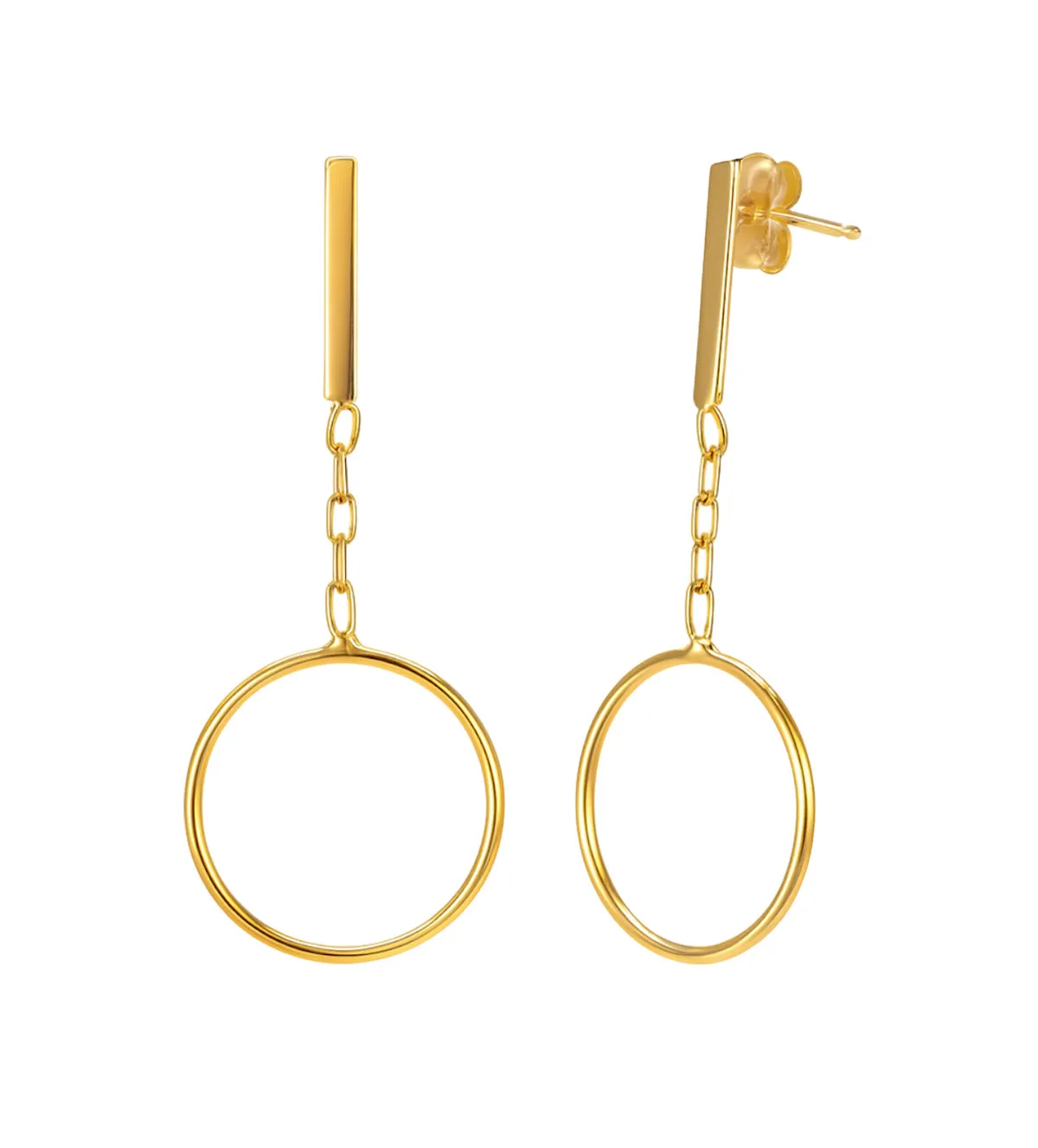 Los pendientes de oro son una de las joyas más versátiles y apreciadas por su capacidad de transformar un look con un simple gesto. Este modelo largo en oro amarillo de 18 quilates, con un círculo suspendido de una fina cadena y tramo recto, destaca por su diseño moderno y su ligereza, ideales para quienes buscan un estilo actual sin renunciar a la elegancia.