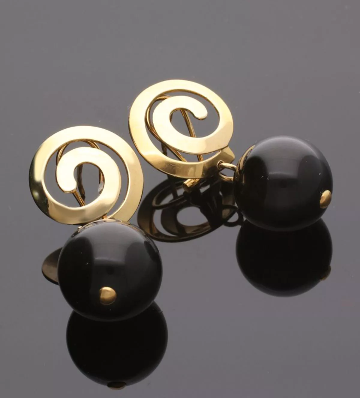 El diseño de los pendientes “Tribal” combina elementos clásicos con un enfoque contemporáneo. La estructura principal presenta un motivo inspirado en la espiral, símbolo de evolución y progreso, lo que aporta un aire de misticismo y elegancia. De cada greca cuelga una esfera de ojo de tigre negro, creando un contraste visual impresionante entre la calidez del oro y la profundidad oscura de la piedra. Esta mezcla de estilos convierte a estos pendientes en una elección perfecta para quienes buscan una joya sofisticada y diferente.