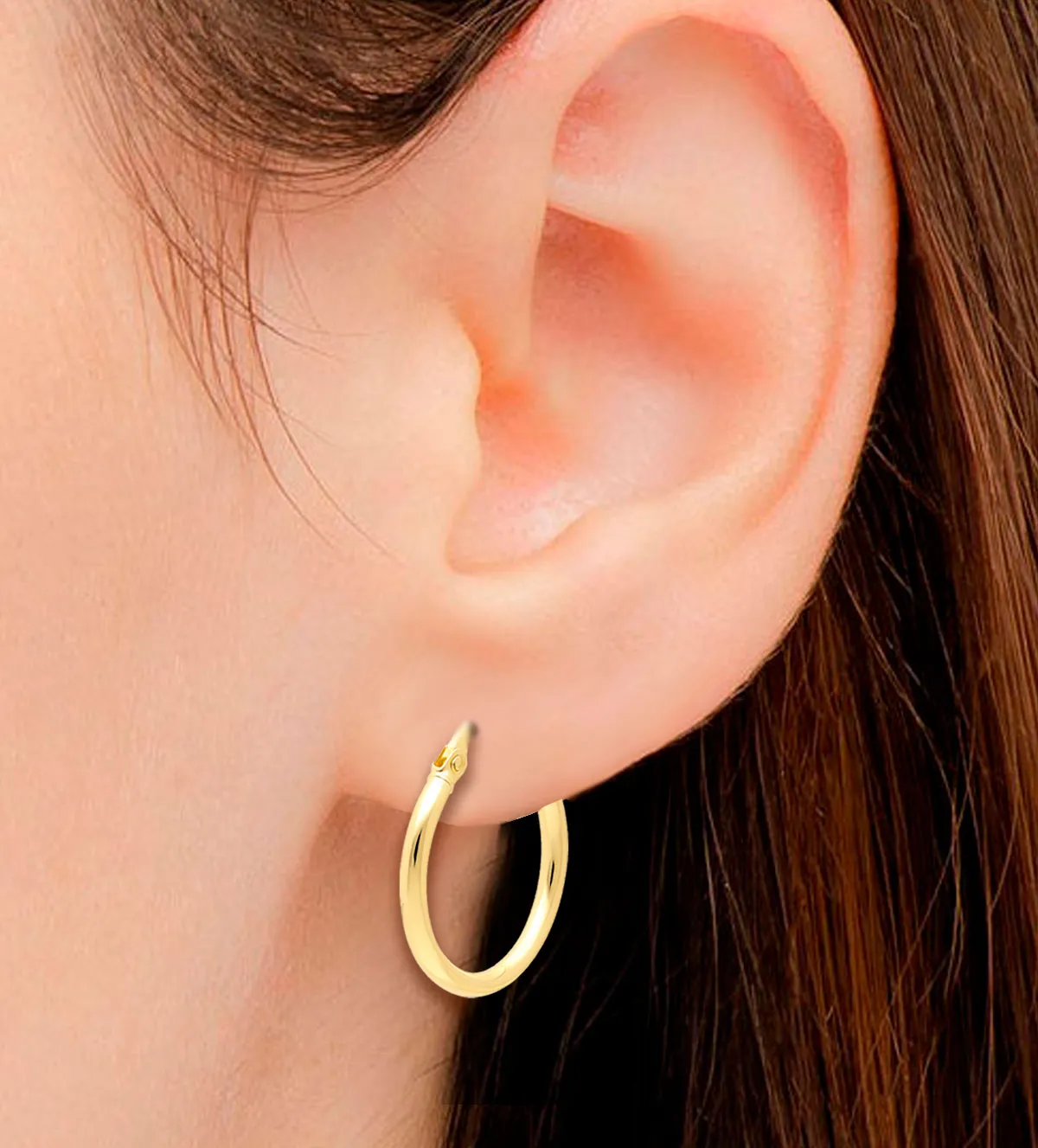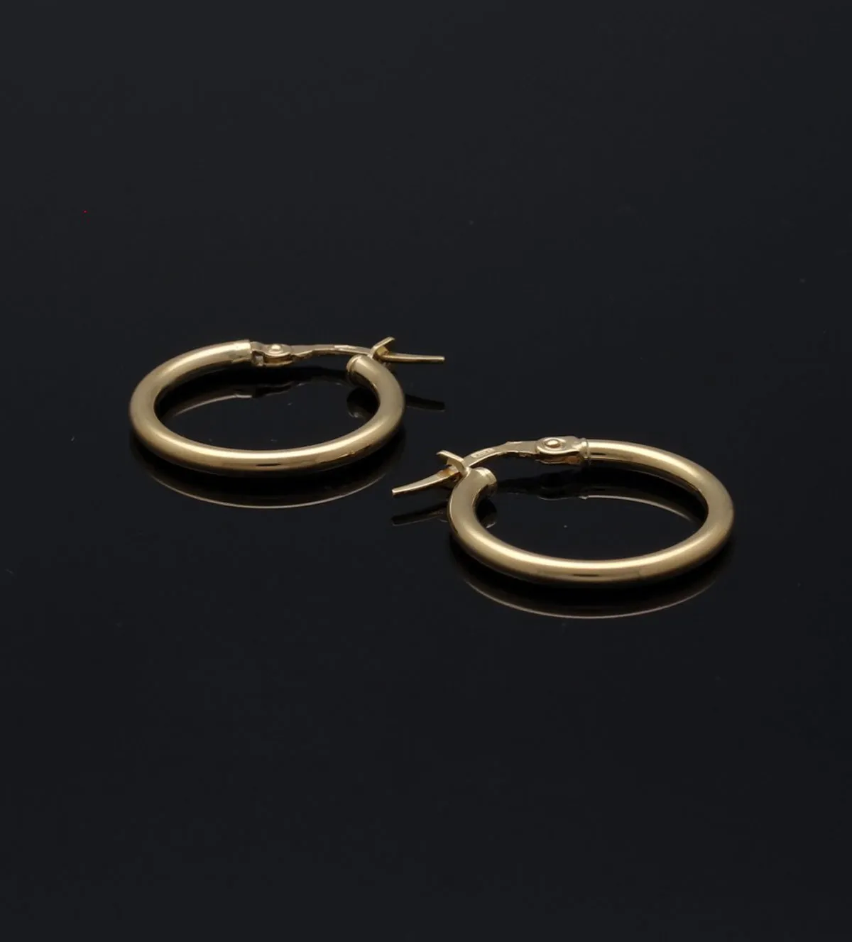 Pendientes de oro con un diseño elegante y versátil que realza cualquier estilo. Fabricados en oro amarillo 9 ktes., destacan por su acabado brillante y su comodidad en el uso diario. Ideales para todas las edades y perfectos para lucir en cualquier ocasión, combinan tradición y modernidad en una joya atemporal. Disponibles en varios tamaños, se adaptan tanto a hombres como a mujeres. ¡Haz tuyos estos exclusivos pendientes ahora, stock limitado y envío inmediato!