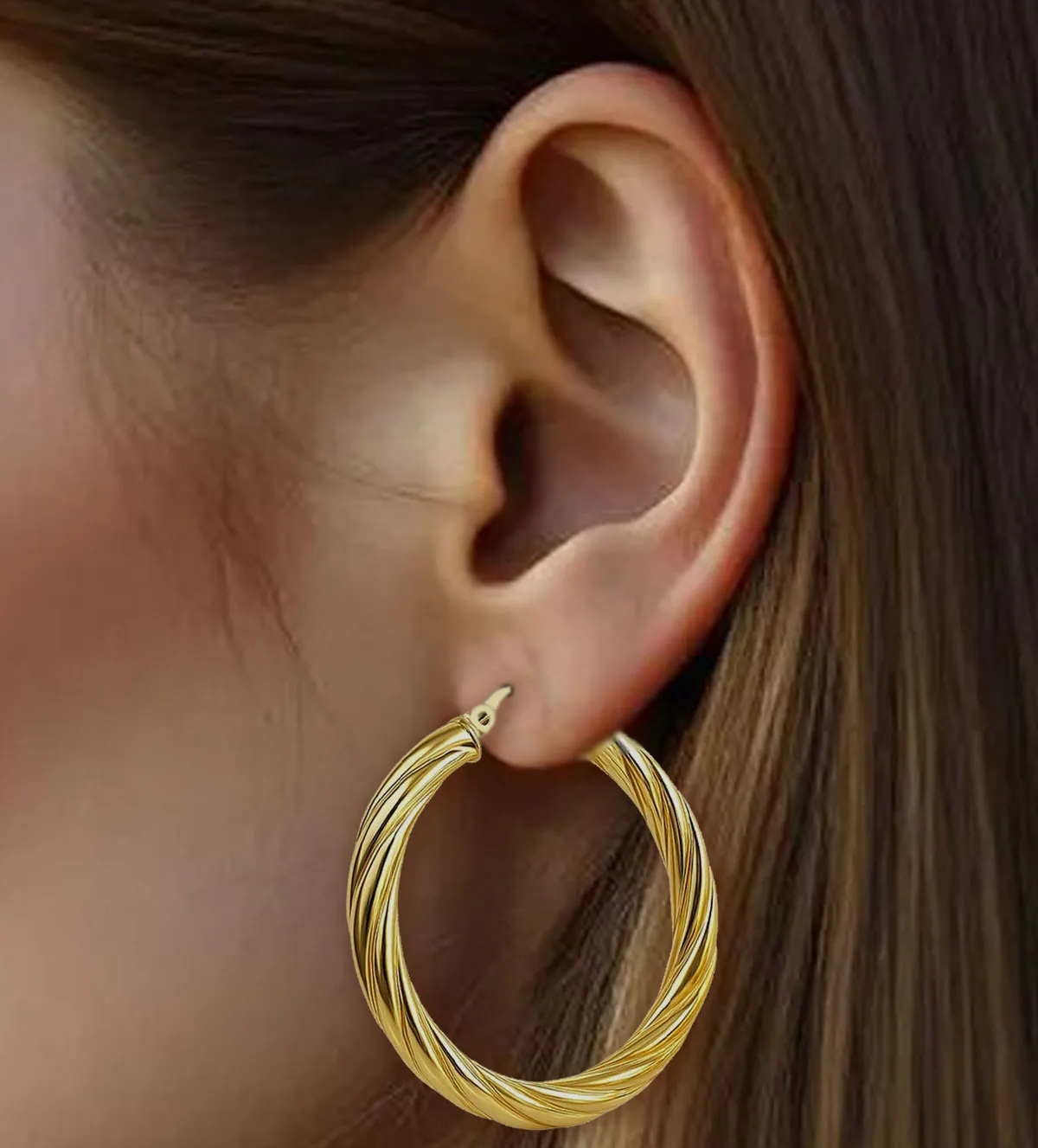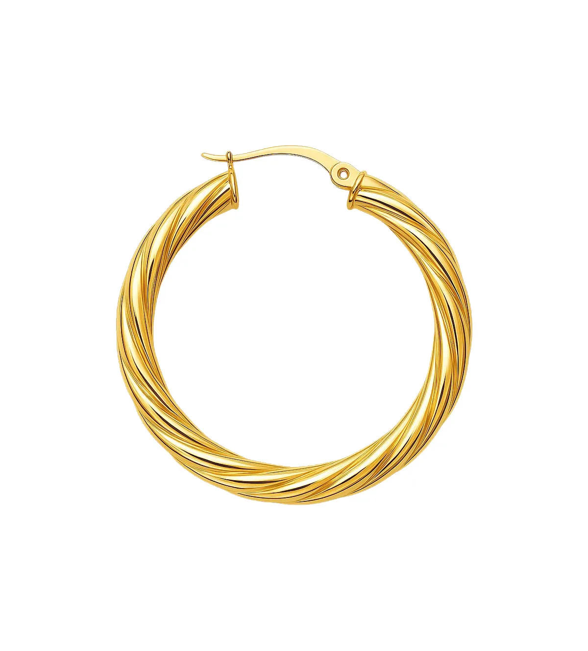 El detalle más llamativo de este modelo es su forma retorcida. Este acabado crea un juego de luces y sombras que potencia el brillo del oro, aportando un efecto dinámico y elegante. La textura retorcida rompe con la simplicidad del aro clásico, otorgándole carácter propio y una personalidad sofisticada. Son criollas atemporales, pero con un toque moderno que nunca pasa desapercibido.