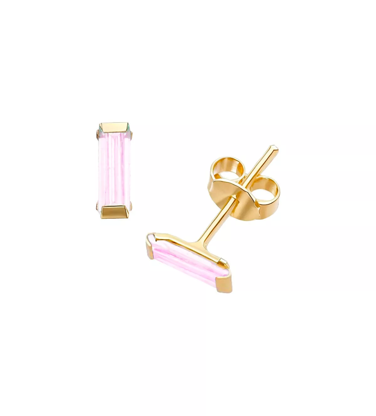 El diseño de los pendientes de oro “Cristalino Rosa” es una verdadera muestra de elegancia y sofisticación. Cada pendiente cuenta con un circon rosa talla baguette engastado en garra, lo que añade un toque de lujo. La atención al detalle y la artesanía detrás de cada pieza aseguran un acabado impecable.