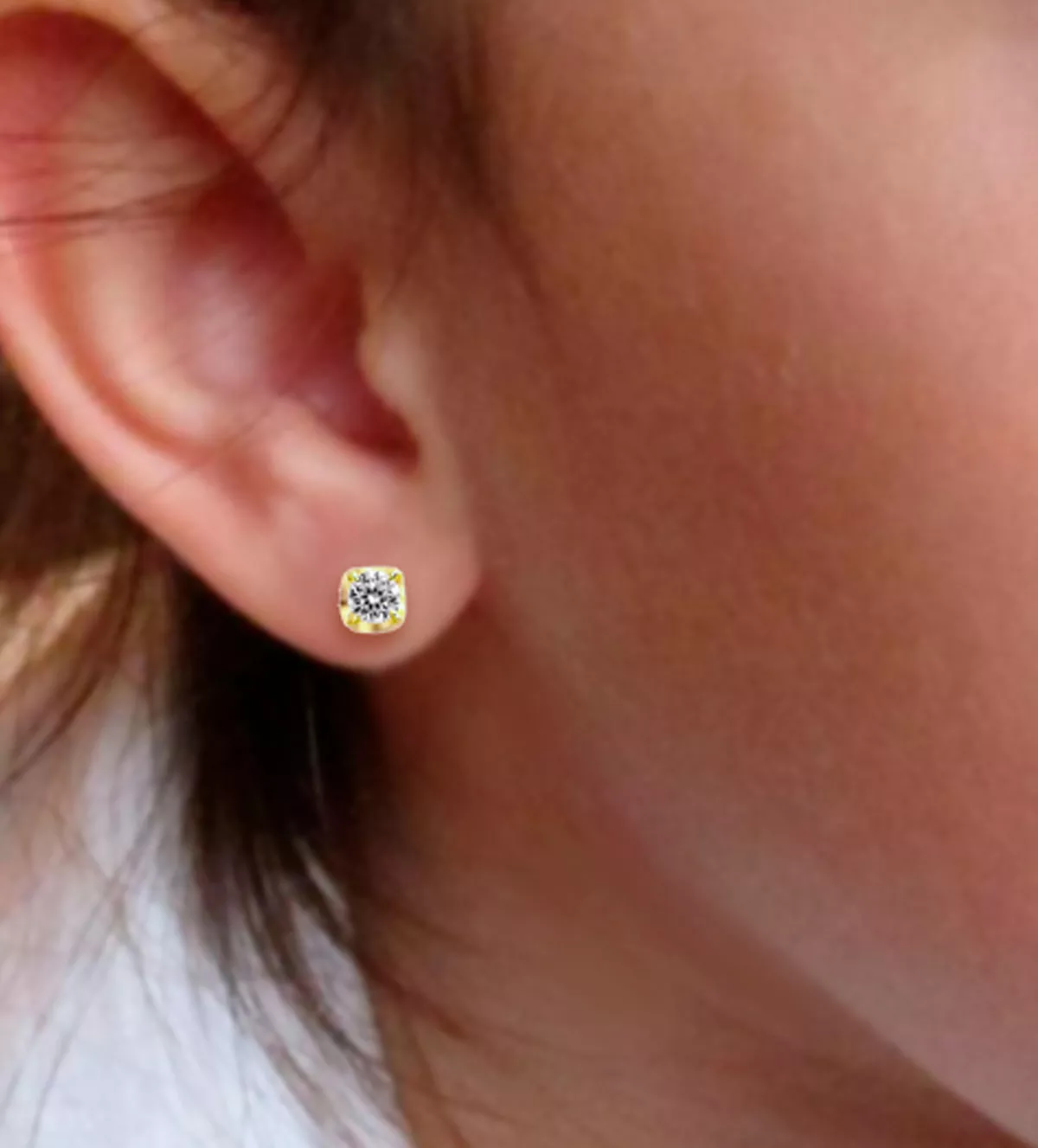 Descubre los encantadores pendientes de oro “Luceros”, perfectos para cualquier ocasión. Estos pendientes de oro 18 ktes son ideales para niñas, hombres o mujeres que prefieren un tamaño pequeño y discreto. Con un circón engastado en garra de cuatro patas en forma de U y un sistema de tuerca de presión, ofrecen seguridad y estilo.