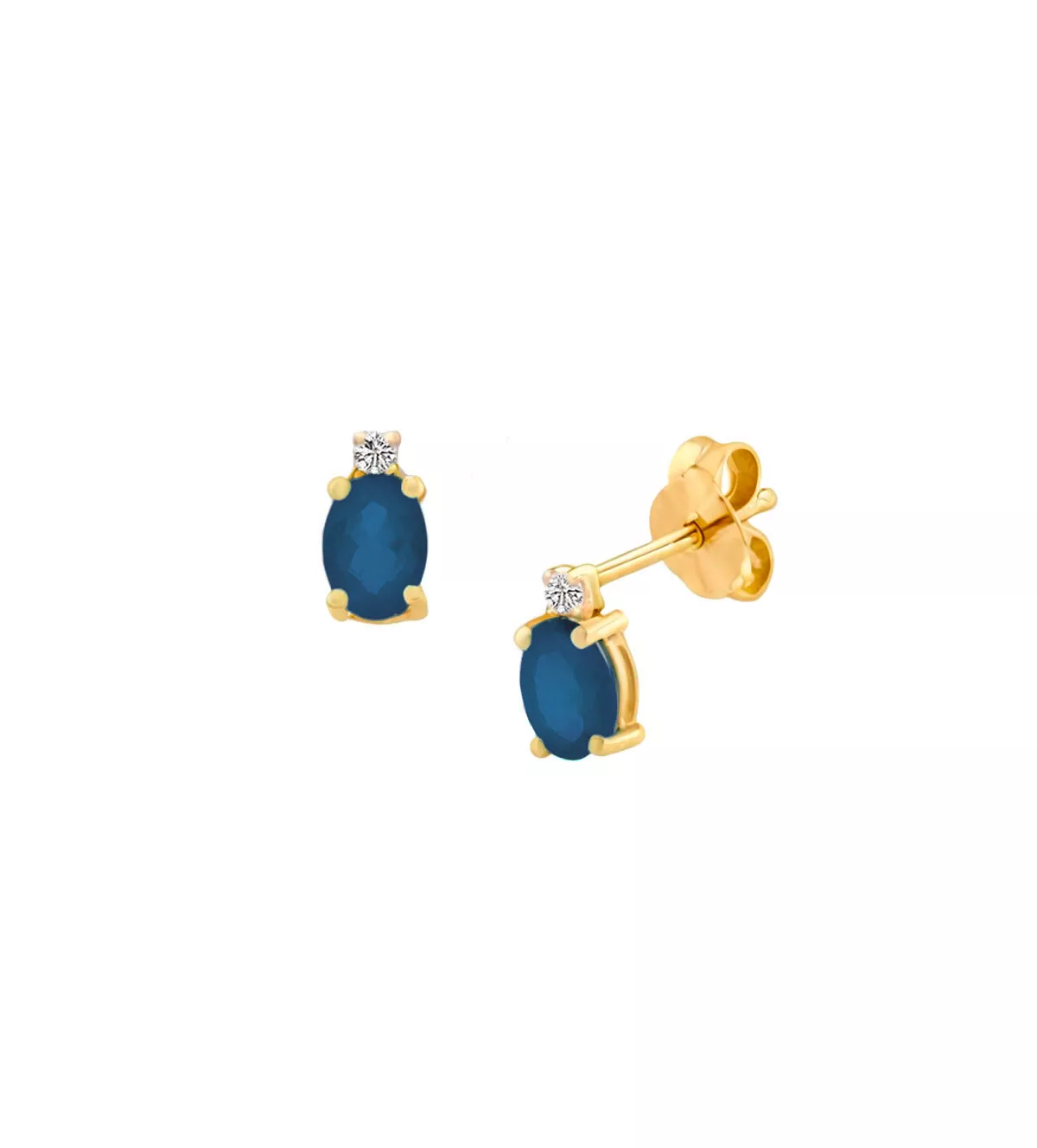 Lo pequeño se hace grande con estos preciosos pendientes que conjugan el oro amarillo de primera ley con un zafiro oval y un pequeño brillante.
