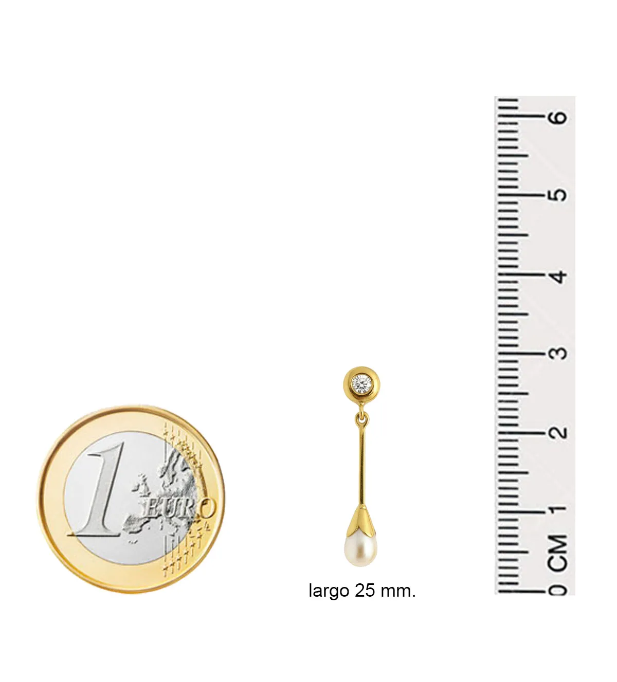 Pendientes de oro amarillo de 18 quilates con perlas cultivadas y circonitas