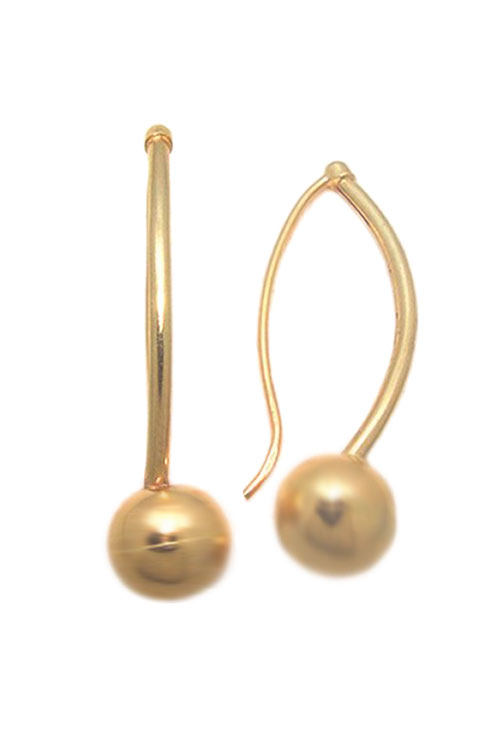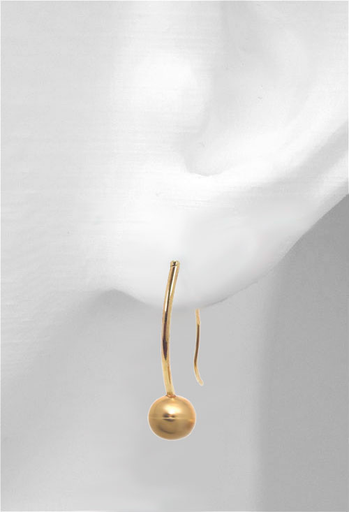 Pendientes para mujer realizados con oro amarillo de 1ª ley (18 kilates) diseño muy exclusivo, sencillo y muy original de colgar o largo consistente en una bola de 7 milímetros de diámetro colgando de una chanela con sistema a modo de anzuelo, en total mide de largo 30 milímetros, resulta un diseño muy fácil de llevar y muy favorecedor en todo tipo de ocasiones, cada pendiente pesa aproximadamente 0,70 gramos por lo que podrás lucir sin notar que llevas nada puesto.