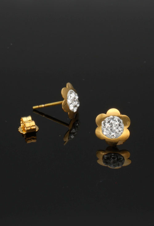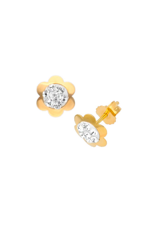 Pendientes oro amarillo 18k forma flor con circonitas