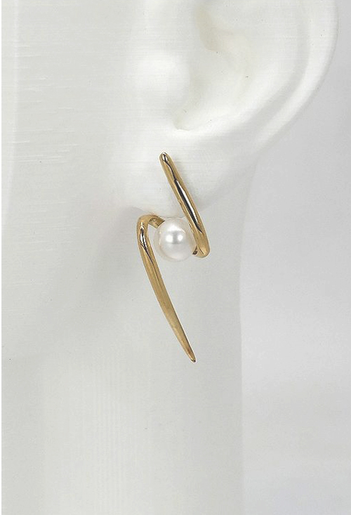 Pendientes oro amarillo 18 kilates con perlas cultivadas, precioso modelo de pendientes largos con un diseño muy original y vanguardista que nunca va a pasar desapercibido cuando los luzcas, son ideales para ocasiones especiales en peinados recogidos, espectaculares siempre, un hilo de oro terminado en punta con una vuelta central que acoge la perla de especial belleza en 8 milímetros de diámetro, en la parte superior sale el pernio con los cierres de mariposa que también se llmán sistemas de presión.
