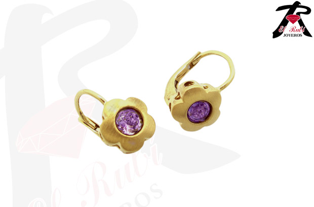 Pendientes oro tipo zarcillos flor con amatista 115_001-P