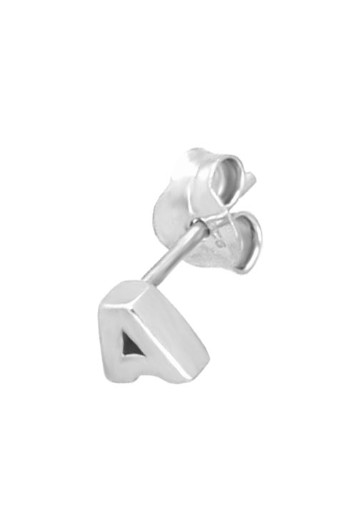 Medio par de pendiente plata inicial A, un excelente obsequio para Almudena o Alicia, la inicial A mayúscula en letra de palo con palillo y sistema de presión, compra este pendiente en nuestra joyería online al mejor precio posible.