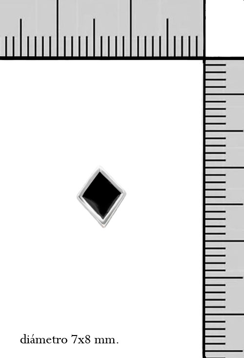 Pendiente hombre de plata forma As de diamantes medio par con forma de rombo que se adorna con un bisel perimetral acabado brillo y un fondo esmaltado en color negro, el pendiente se cierra con sistema de presión, el diamante es símbolo de triunfo en la vida, y gusta ser llevado por los que se sienten triunfadores.