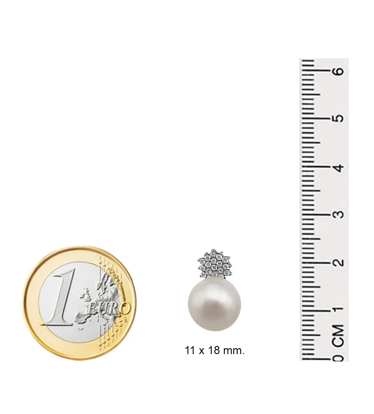 Elaborados en plata de ley y recubiertos con un baño de rodio, estos pendientes garantizan durabilidad, resistencia al desgaste y un brillo superior. La plata de ley es conocida por su resistencia a la corrosión y su valor como material noble, mientras que el rodio ofrece una protección adicional y un acabado impecable que evita la oxidación. Las perlas cultivadas de 11 mm aportan una textura suave y un color natural inigualable, mientras que las circonitas engastadas en roseta añaden un brillo cautivador similar al de los diamantes.