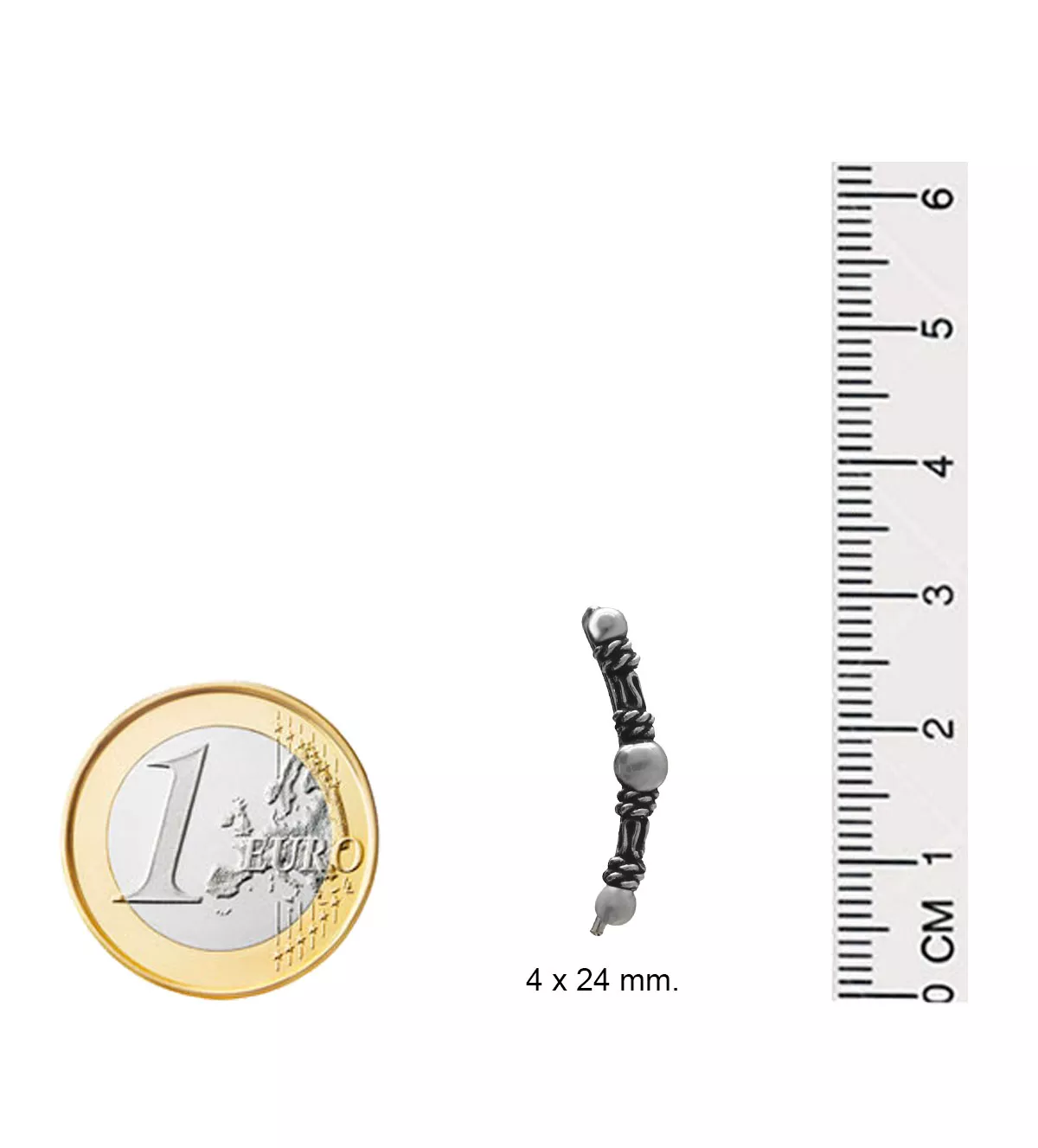 Los pendientes de plata “Mistrio” están elaborados en plata de ley oxidada, un material de alta calidad que garantiza la durabilidad y resistencia de la pieza. La plata de ley es conocida por su pureza y brillo, mientras que el proceso de oxidación añade un acabado envejecido que realza el diseño tribal, dándole un aspecto rústico y auténtico. Este material no solo es duradero, sino que también es hipoalergénico, lo que lo convierte en una opción segura para todo tipo de pieles.